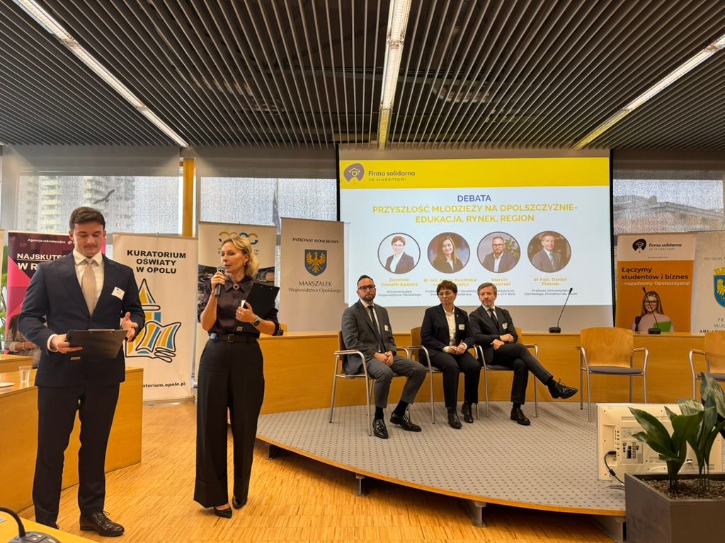 Wydarzenie dopełniła merytoryczna debata „Przyszłość młodzieży na Opolszczyźnie” z udziałem Wicemarszałek Zuzanny Donath-Kasiury, prof. Daniela Pietrka (Prorektor UO) oraz Marcina Jaworskiego (Prezes GTV Bus).