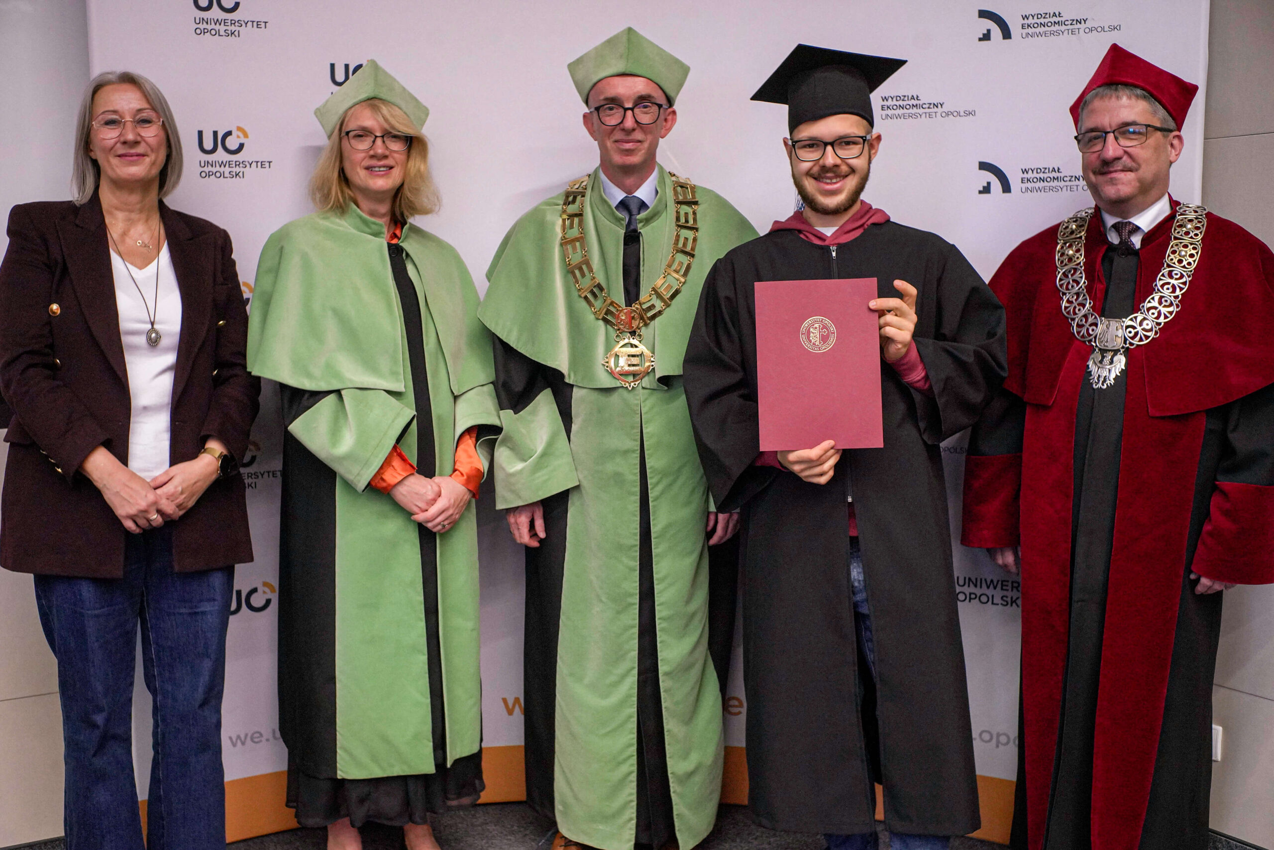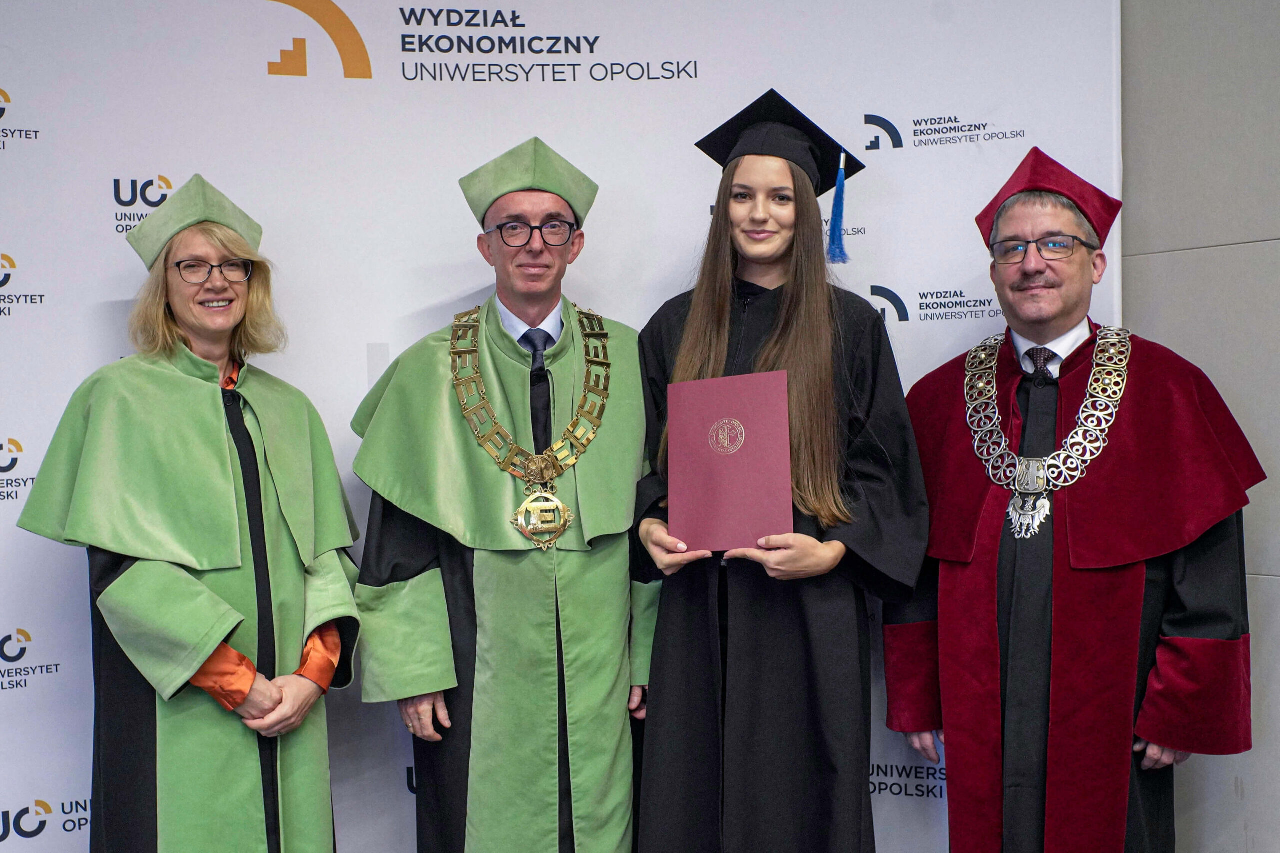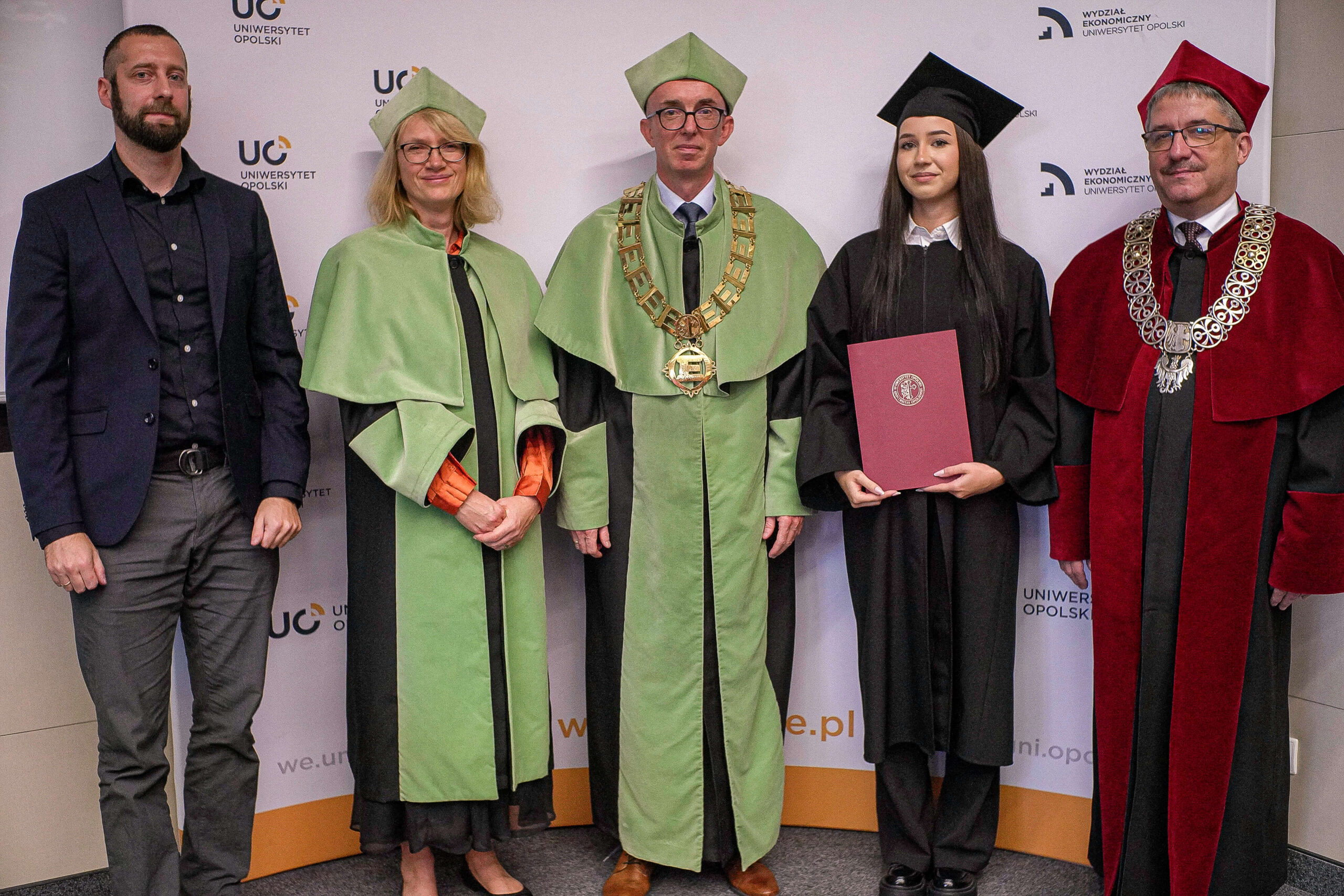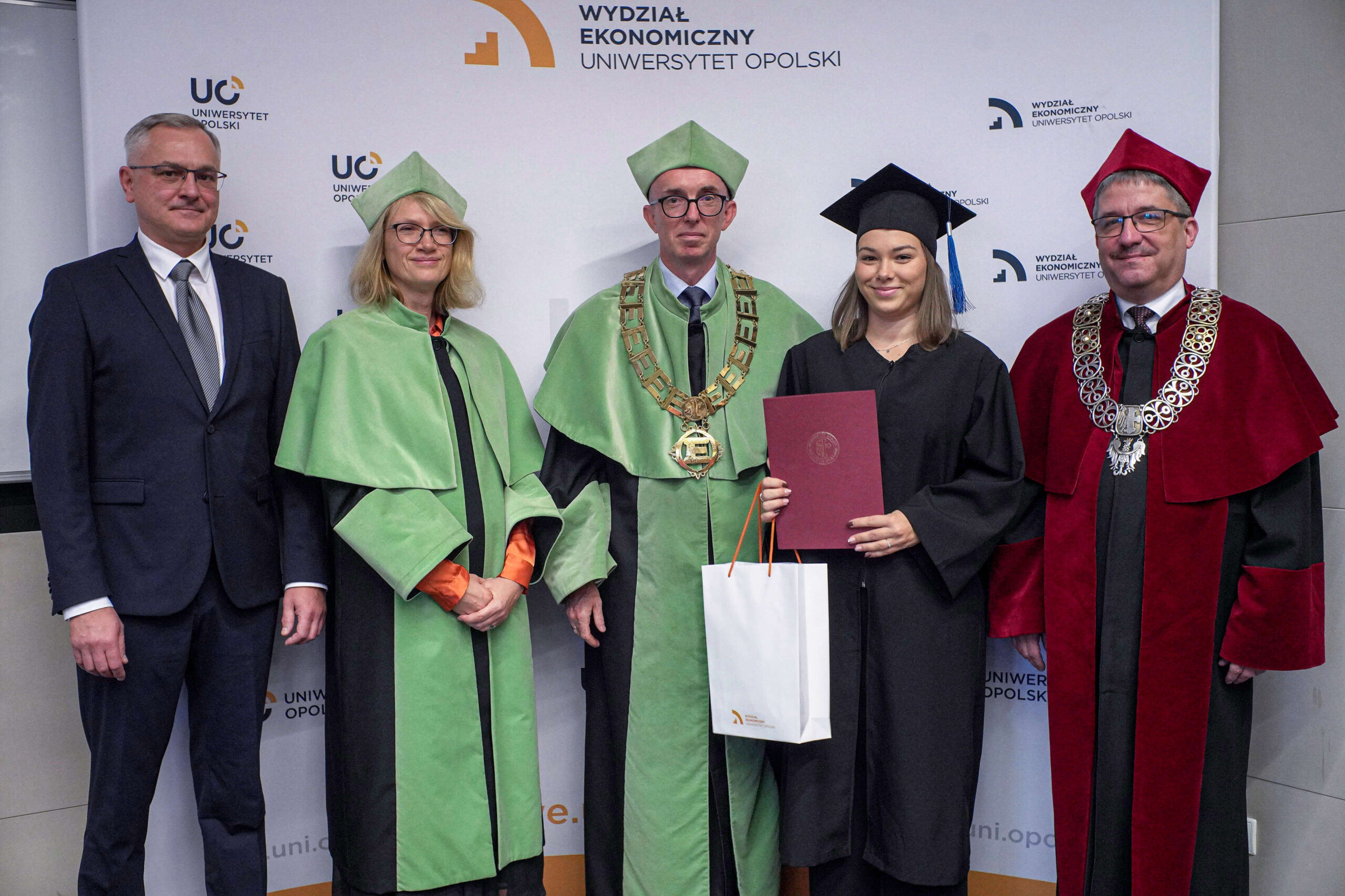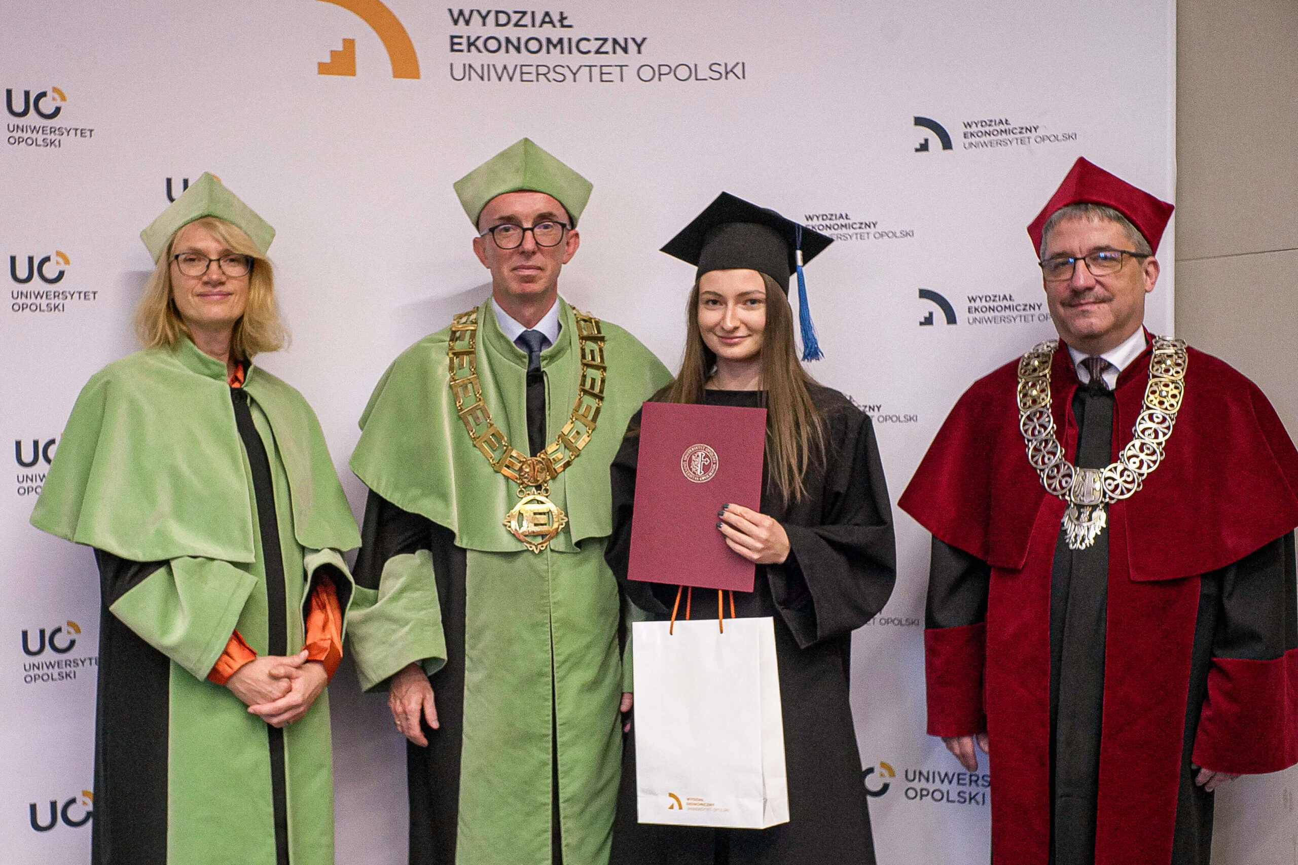 Podczas uroczystości Dziekan Wydziału Ekonomicznego podziękował absolwentom za lata wspólnej nauki, zaangażowanie i aktywny udział w życiu akademickim, życząc im dalszych sukcesów zawodowych oraz satysfakcji z podejmowanych wyzwań. Wręczenie dyplomów było symbolicznym zwieńczeniem kilkuletniego okresu studiów, pełnego zdobywania wiedzy, doświadczeń i nowych przyjaźni.