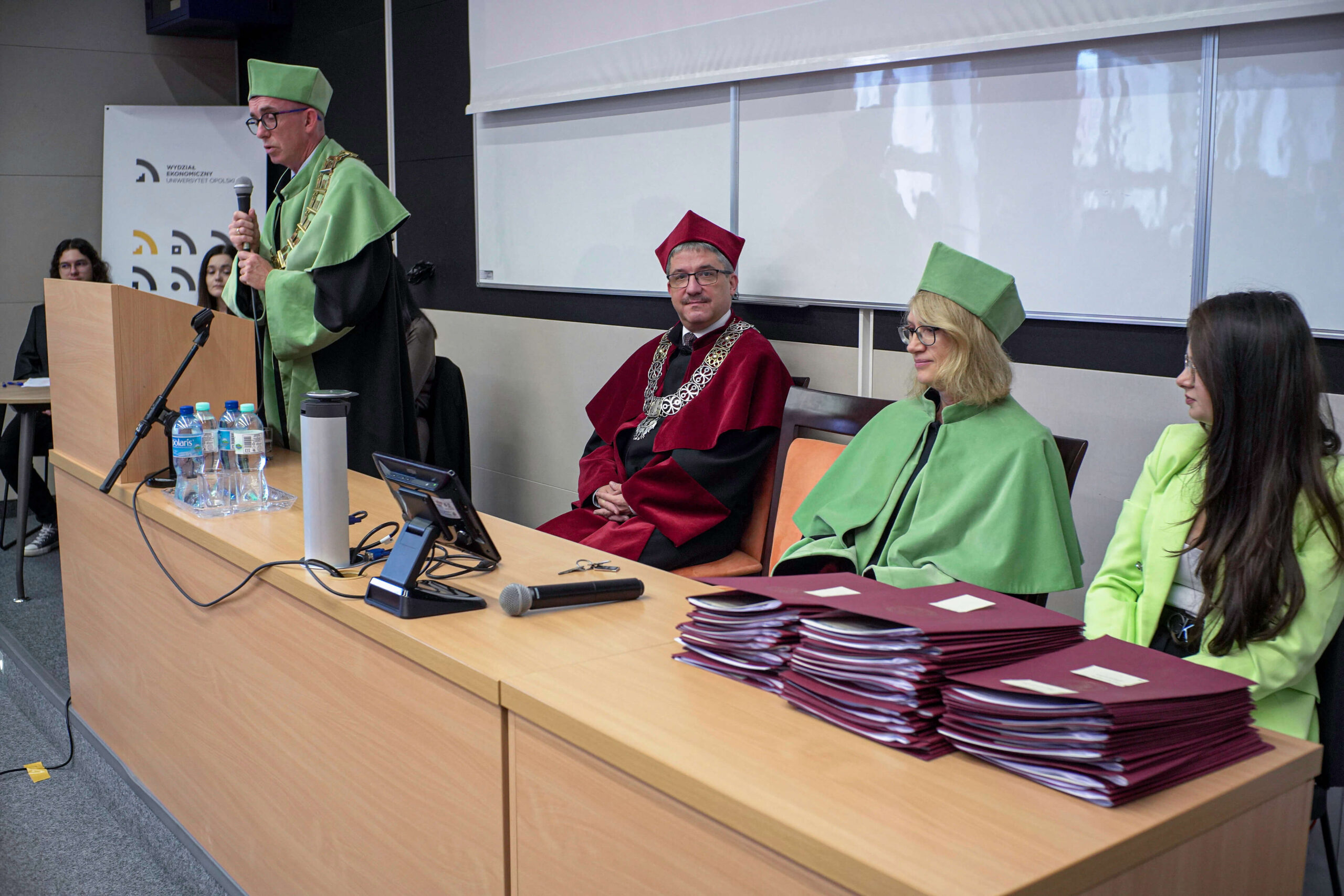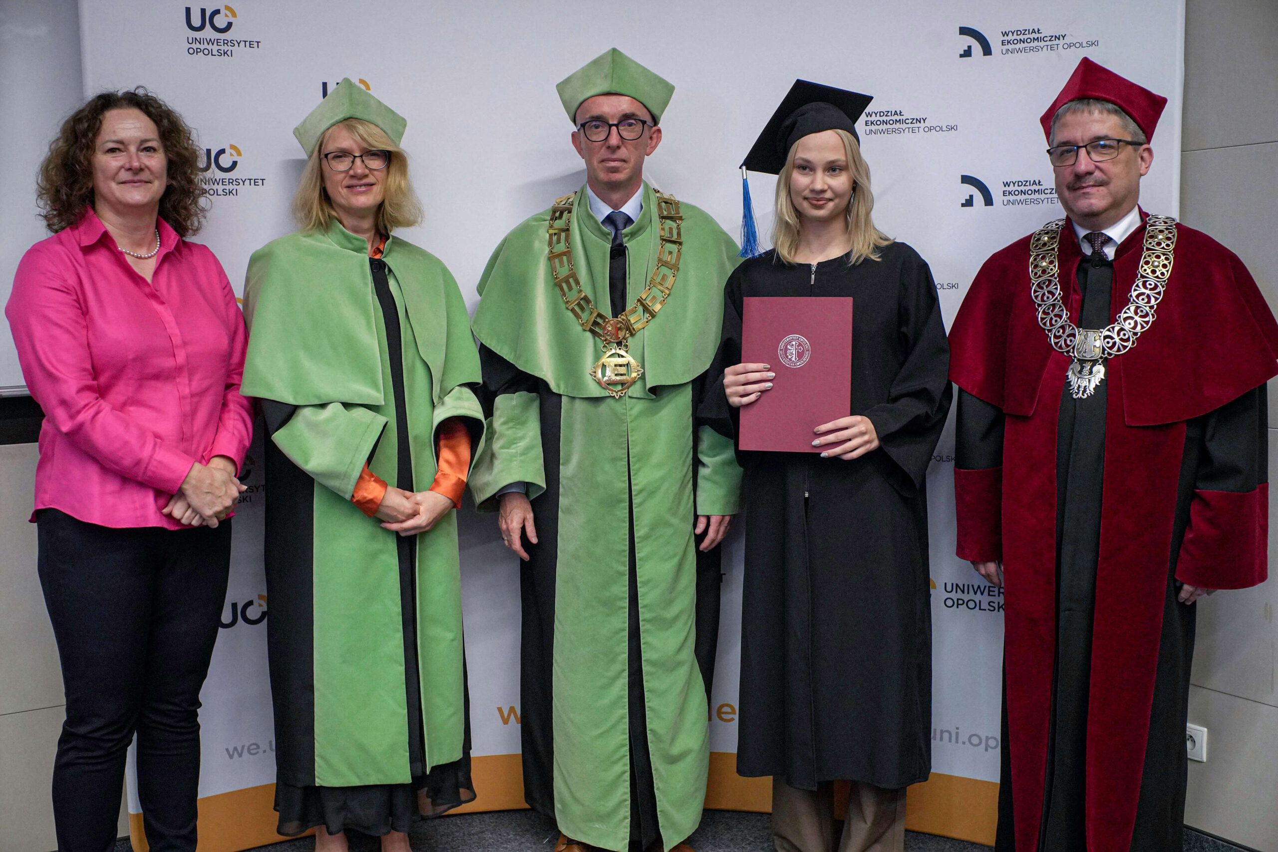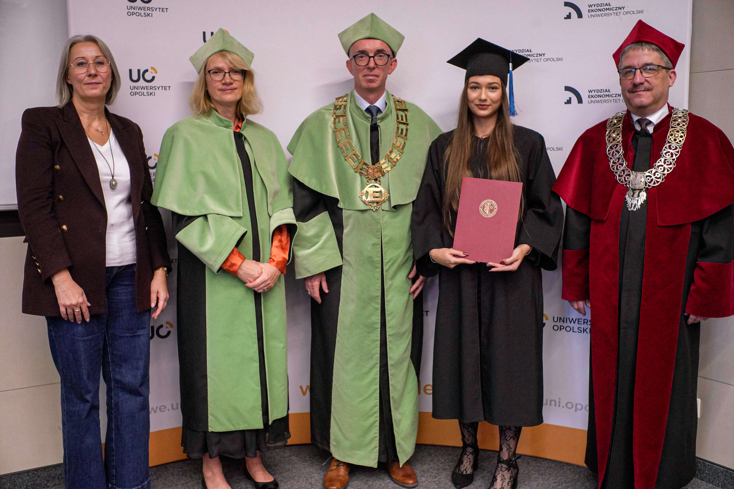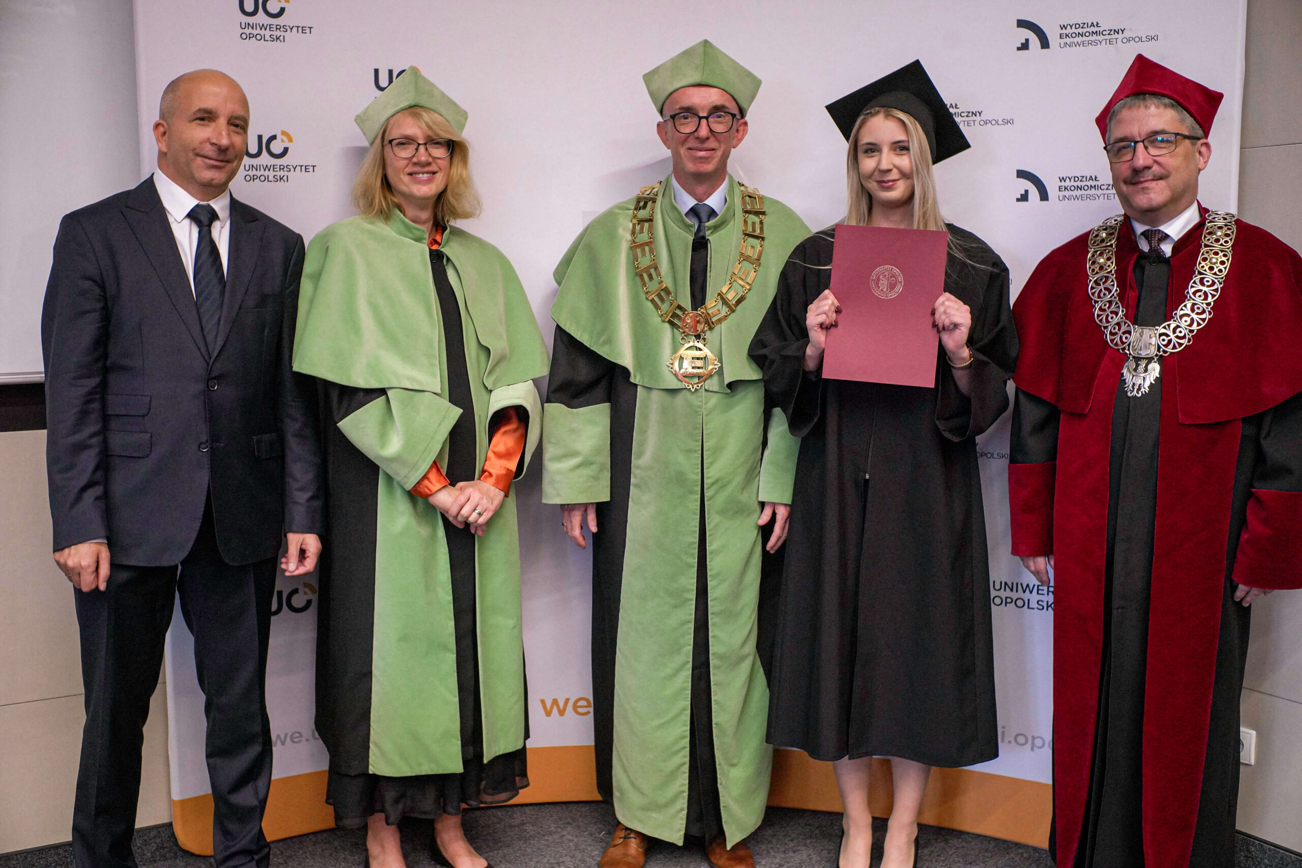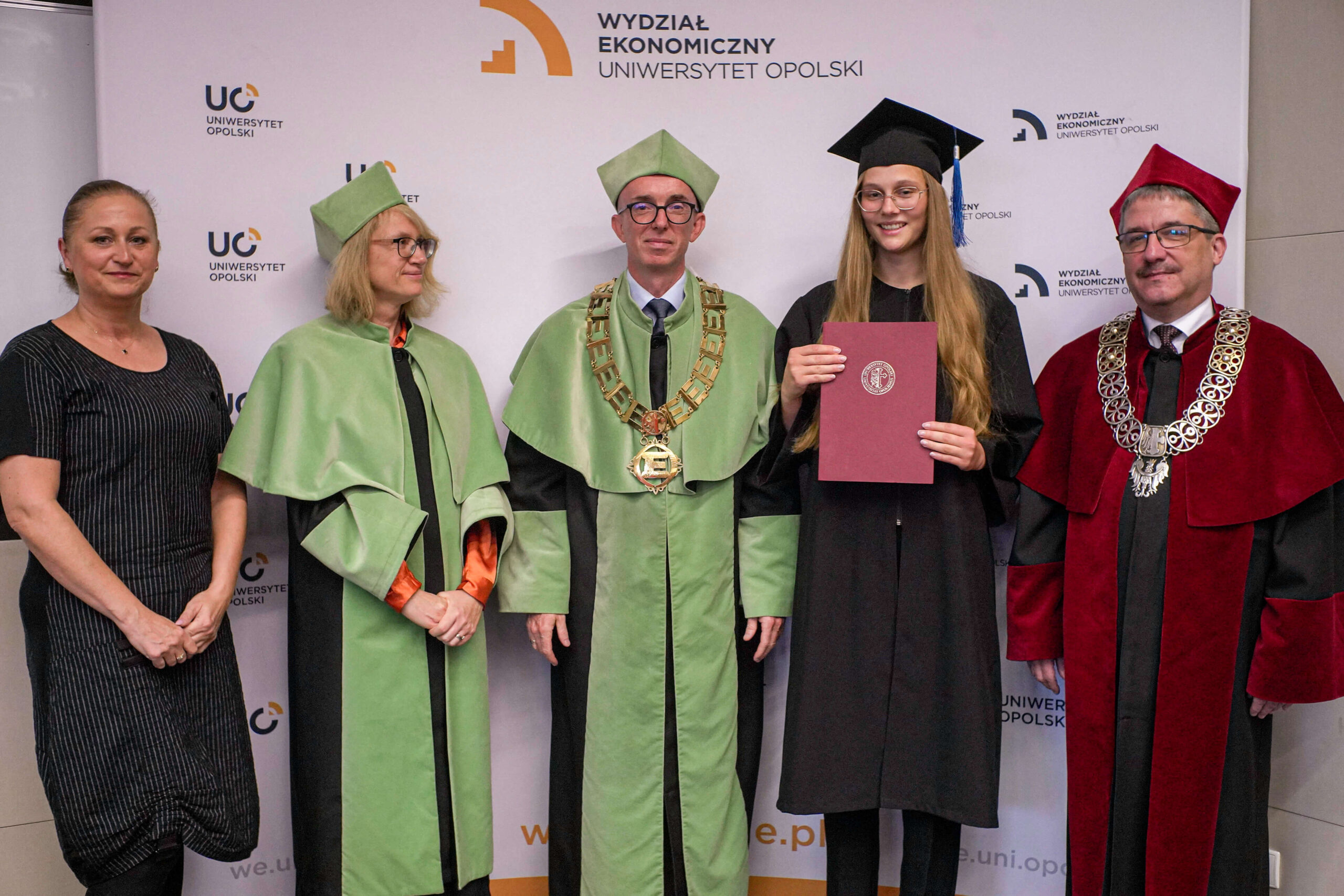 Podczas uroczystości Dziekan Wydziału Ekonomicznego podziękował absolwentom za lata wspólnej nauki, zaangażowanie i aktywny udział w życiu akademickim, życząc im dalszych sukcesów zawodowych oraz satysfakcji z podejmowanych wyzwań. Wręczenie dyplomów było symbolicznym zwieńczeniem kilkuletniego okresu studiów, pełnego zdobywania wiedzy, doświadczeń i nowych przyjaźni.